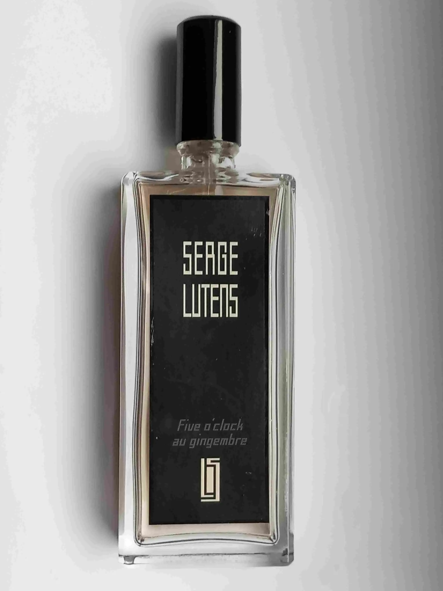 - Serge Lutens – Five o’clock au gingembre, după cum îi spune și numele, miroase a ceaiul de la ora 5 în care am pus și nițel ghimbir biruit de miere. Este puternic prin delicatețe, penetrează prin prospețime și definește prin profunzime. Miroase precum obiectele fostei iubite. Sau precum cămașa lui.