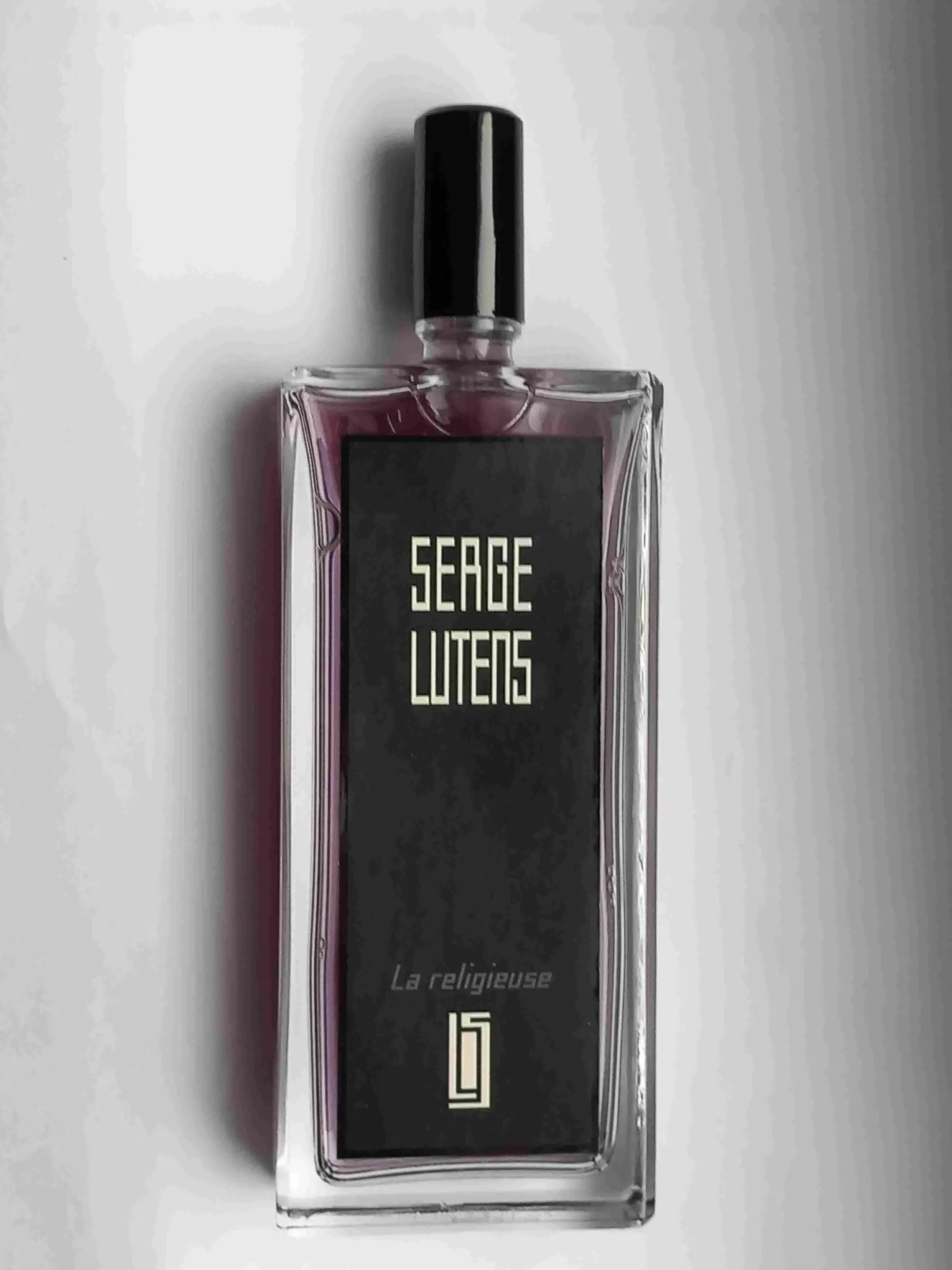 - Serge Lutens – La religieuse, adaptat – călugărița, este un parfum mov, fin, curat, discret, limpede, ușor masculin, aroma pe care o simți în preajma unui diplomat sau a unei personalități. Este un cool jazz, un parfum care te iubește fără să îți facă declarații de dragoste, este o aromă de liliac și lavandă, pe o stradă pavată cu piatră cubică pe care a plouat, iar la etajul doi se aude o trompetă sau un saxofon…