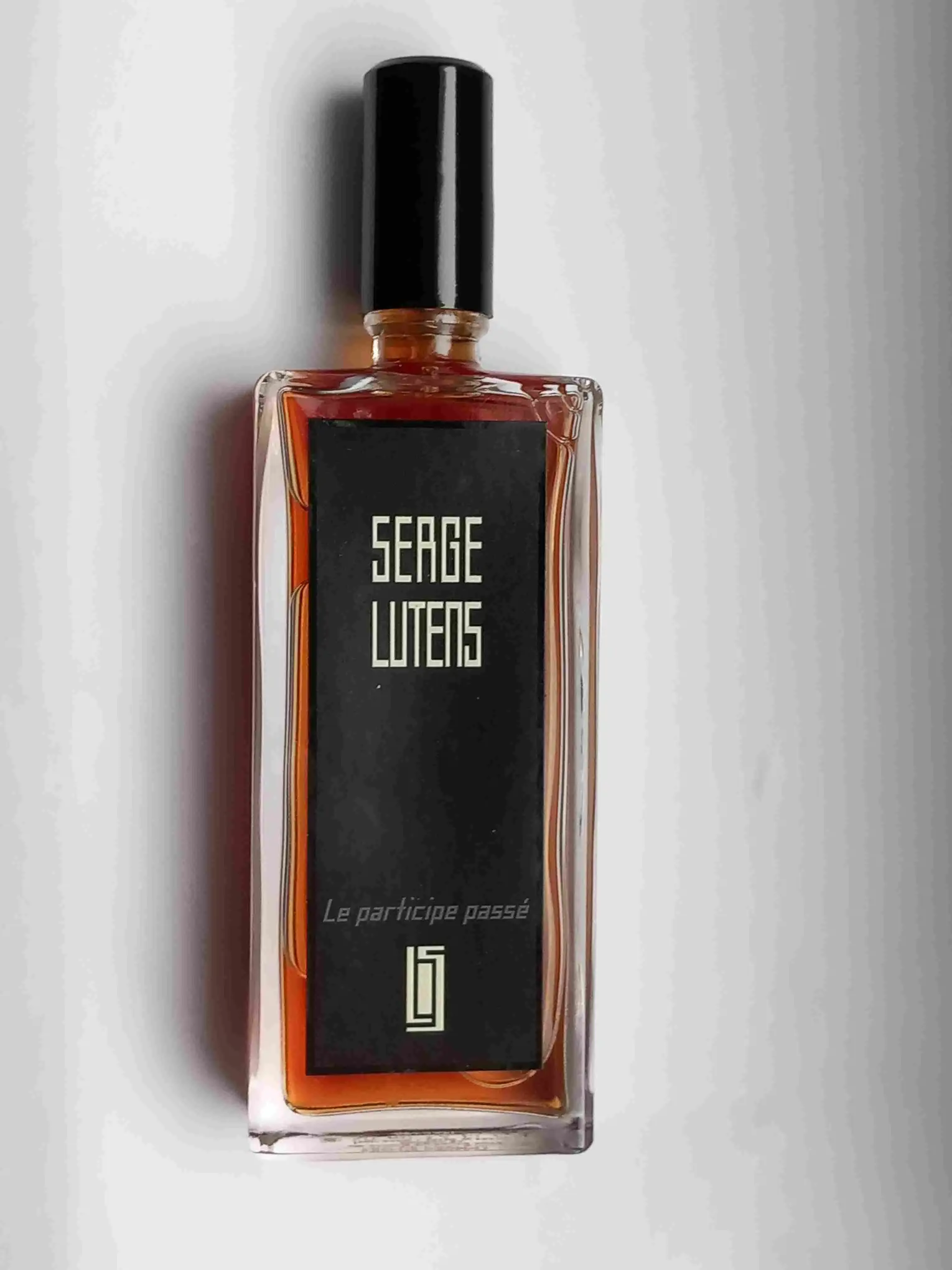 - Serge Lutens – Le participe passe – tradus Participiul trecut, este un parfum paseist în care predomină mirosul de zahăr ars, caramel de cea mai bună calitate, prăjitura copilăriei – crema de zahăr ars ornată cu fulgi de cocos… se simte prezența unei cărți vechi, prăfuite, iar în camera de alături se aude un solo excepțional de contrabas. Este doar zahăr ars și zahăr ars!